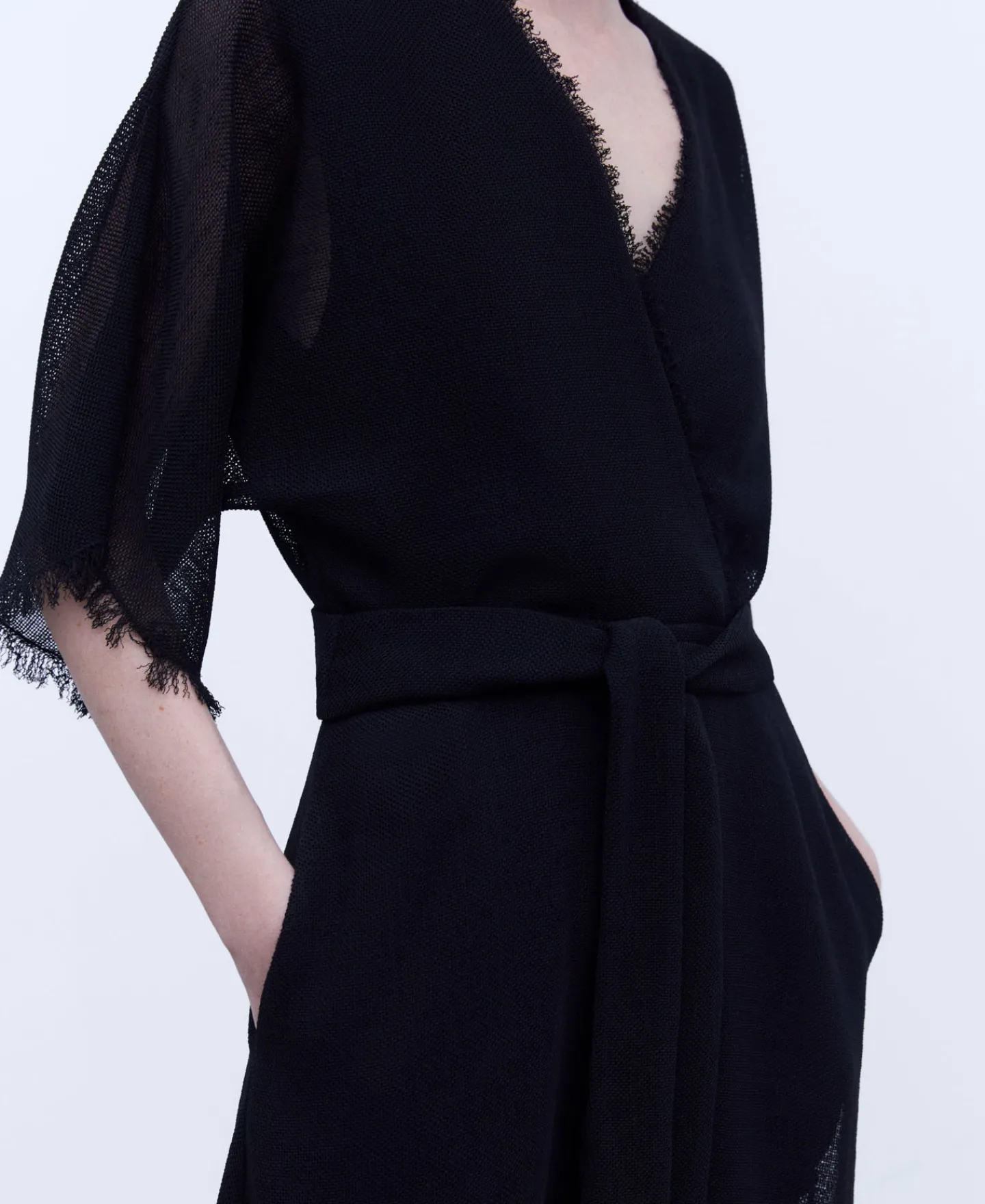 Midi. Manga Japonesa. Frontal Com Cruzado Em V. Desfiados Na Bainha, Mangas E Decote.Comprimento MidiManga JaponesaFront…